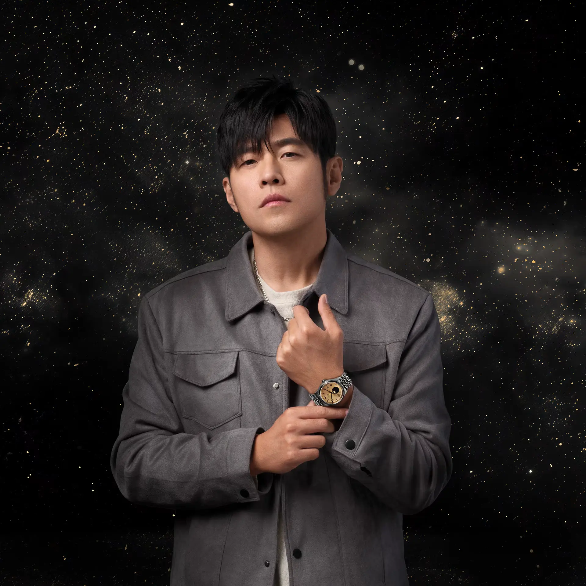 DialChampagne-colour satin sun-brushed dial with applied numerals and moon phase indicator