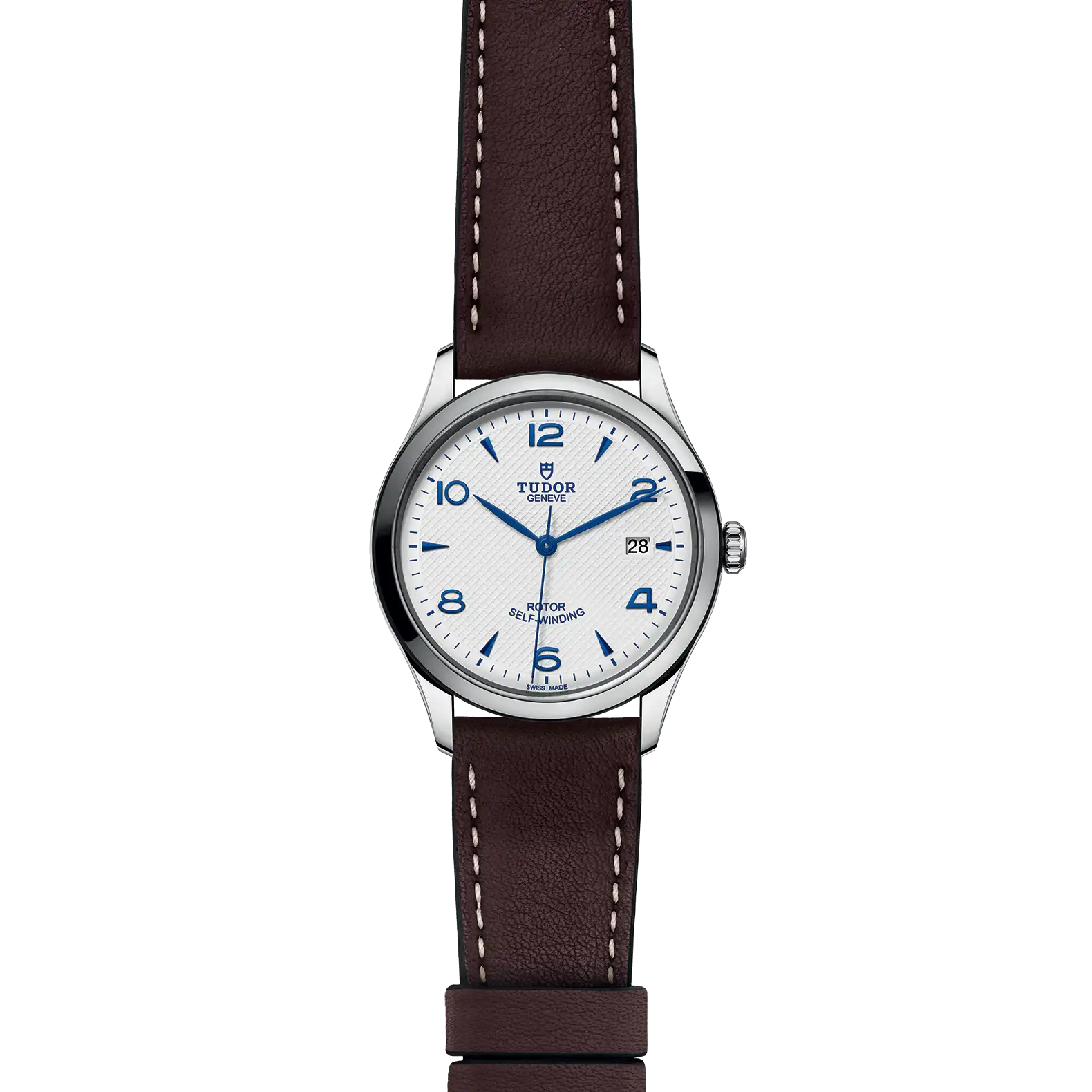 39mm steel case, Opaline and blue dial